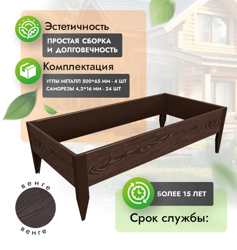 • Комплект грядок ДПК прослужит минимум 15 лет даже в самых агрессивных условиях.
